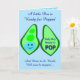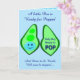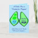 Cette belle carte de voeux présente une image graphique d'un pod vert de pois contenant 2 pois verts et un gros pois bleu. Le grand pois bleu a un petit visage mignon avec les yeux et une bouche. De l'autre côté du pod en rose foncé, il est écrit "Baby Boy Ready to Pop". Le design est idéal pour un faire-part ou un baby shower de grossesse et comprend du texte personnalisé pour vous permettre de le personnaliser. Il y a un groupe de petits pois bleus dans l'arrière - plan.