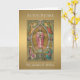 Il s'agit d'une image traditionnelle de Jésus le Grand Prêtre tenant le calice et l'hôte avec des anges en adoration. Quelle belle façon d'offrir vos félicitations et vos bénédictions pour la retraite d'un prêtre ou toute autre occasion spéciale.