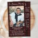 Cartes de prières funéraires en marbre bleu Premium Sympathy. Cette simple carte de prière commémorative présente un design élégant en automne rouge bordeaux. Avant "In Loving Memory" Personnalisez cette carte de prière funéraire commémorative avec vos proches photo, nom & dates, et sentiment. Retour ~ Poème 'Miss Me', qui peut être personnalisé, s'il vous plaît tendre la main si vous voulez un design avec un poème spécifique autre que. Cette carte de prière commémorative plastifiée sera un souvenir précieux, pour les services funéraires et la célébration de la vie. DROIT D'AUTEUR © 2020 Judy Burrows, Black Dog Art - Tous droits réservés. Prière commémorative Funérailles Signet Bourgogne Plaid