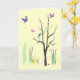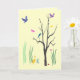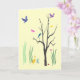 Cette carte d'amitié crée une humeur printanière colorée et capricieuse. Les oiseaux volent et sont perchés dans l'arbre. Les papillons flottent dans l'air chaud. Un canard barbote dans l'herbe. Il y a même un minuscule escargot au sol. Le design se répète à l'intérieur. Le texte dit : Je pense seulement à vous... Il peut être customisé pour répondre à vos besoins.