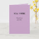 Célébrez une grande réussite professionnelle de votre collègue, ami ou aimé avec cette carte ! Le message est un jeu de mots sur la fameuse phrase du philosophe René Descartes "Je pense, donc je suis" ("cogito ergo sum"). Le recto de la carte dit : "VOUS PENSEZ", suivi de "donc vous êtes..." en lettres manuscrites noires sur un arrière - plan violet lilas. En ouvrant la carte, le libellé poursuit : "UN PROFESSEUR COMPLET! Félicitations !" Parfait pour l'avancement à professeur titulaire dans n'importe quel domaine académique ou discipline.