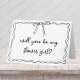 Invitation votre petite fille de fleurs pour faire partie de votre journée spéciale avec cette carte douce et charmante "Serez-vous ma fille de fleurs ?". Le design en noir et blanc dessiné à la main, avec un arc ludique et des bordures amusantes, apporte une touche simple mais moderne à vos plans mariages. Que votre style soit minimaliste, vintage ou classique, cette carte personnalisable ajoute un moment spécial à vos invitations de soirée nuptiale. Personnalisez l'intérieur avec un message sincère juste pour elle. Parfait pour la surprendre sous une douche nuptiale ou l'envoyer par la poste, cette carte lui fera certainement sentir vraiment spécial.