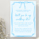 Invitation tes amis pour faire partie de ta journée spéciale avec notre carte de proposition "Quelque chose de bleu". Ce design enchanteur allie tradition et modernité, avec une bordure bleue chic et un script fantaisiste qui demande : "Seras-tu mon quelque chose de bleu ?" Parfait pour donner le ton à un mariage aussi unique que votre amitié, cette carte permet de personnaliser le texte pour rendre votre invitation vraiment personnel. Célébrez votre voyage mariage avec un peu de bleu !
