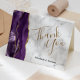 Cette élégante carte de remerciements mariage moderne dispose d'une bordure en aquarelle violette ornée d'une parties scintillant en faux or. Le texte personnalisable combine les mots "Merci" en écriture manuscrite couleur or et les noms de la mariée et du marié en caractères italiques noirs sur un arrière - plan en marbre blanc et gris.
