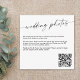 Voici notre "Carte de partage de photos de mariage à code QR personnalisé" – présentée ici dans un petit format de carte (voir autres options de taille) - un moyen personnalisé et pratique d'encourager les invités à partager leurs photos de votre jour spécial. Cette carte comporte un code QR personnalisé que les invités peuvent scanner pour accéder facilement à votre plateforme de partage de photos de mariage. Personnalisez chaque détail pour rendre cette carte unique. Design simple en noir et blanc que vous pouvez personnaliser avec un message à côté du code QR. Le code QR personnalisé permet aux invités de partager facilement leurs photos, vous assurant ainsi de capturer chaque moment précieux de votre célébration. Parfait pour améliorer votre expérience de mariage et capturer des souvenirs, cette carte de partage de photos allie avec élégance la fonctionnalité. Faites une déclaration avec cette carte conçue de manière unique qui ajoute une touche de commodité à vos efforts de partage de photos de mariage.