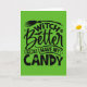 Ce design sur le thème d'Halloween présente la phrase ludique "Witch Better Have My Candy" disposée dans une mise en page dynamique et à polices mixtes. Le mot "Witch" est affiché en lettres grasses et carrées, tandis que "Better" est écrit dans une écriture cursive et fluide, ajoutant un sentiment d'urgence et d'amusement au design. La phrase "Have My" est entourée d'une bannière, soulignant encore davantage la demande. Le mot "Candy" se démarque en bas en grandes lettres capitales, avec des illustrations de crânes intégrées dans le design. Des éléments supplémentaires d'Halloween, tels qu'un balai de sorcière, une chauve-souris, une étoile et des bonbons enveloppés, sont dispersés dans la composition, renforçant l'atmosphère effrayante et festive.
