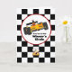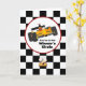 "You are in the Winner's Circle" carte d'anniversaire de course pour cette petite canne chaude spéciale tournant 2, avec un conducteur dans un casque rouge derrière le volant d'une voiture de course sportive jaune dans un cercle de gagnants blancs souligné en rouge avec un arrière - plan noir et blanc audacieux à damiers ... un grand choix d'anniversaire pour tout garçon ou fille qui aime les voitures et la course.