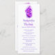 Fleur d'orchidée à aquarelle détachée à double face peinte avec des pétales en forme de coeur en violet et des fleurs d'art sur un programme de mariage arrière - plan blanc. Une partie de l'aquarelle fine art stylisé mariage orchidée stationnaire. Tons mauve et blanc. Modifiez ce programme de mariage avec votre propre nom, dates, libellé de la cérémonie, accompagnateurs de mariage et merci. Un programme simple mais élégant remplace simplement un exemple de texte par vos informations de mariage. Programme de cérémonie mariage moderne et romantique. Aquarelle de Sarah Trett.