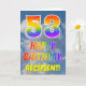 Cette carte de voeux amusante et colorée de 53ème anniversaire présente une représentation d'un ciel bleu avec des nuages, ainsi qu'un grand nombre de "53" et le message "HAPPY BANTHDAY", avec un spectre arc-en-ciel inspiré colorant motif dégradé, sur le devant. Le devant contient également un nom de destinataire customisé. L'intérieur comporte un message de voeux d'anniversaire modifiable, ou peut-être pourrait-il être effacé et laissé vide si un message doit être écrit à la main à la place. Une carte d’anniversaire personnalisée comme celle-ci pourrait être une façon amusante d’envoyer un message pour célébrer le cinquante-troisième anniversaire de quelqu’un. [~Z0000371]