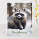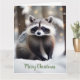 Cette carte de Noël présente un raton laveur mignon dans une forêt magique.
