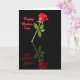 This design shows a single deep-red rose set against a pure black background, with the bloom placed up in the upper right like a quiet gift offered from a distance ❤️. Its petals open in layered curves, and the rich red shading gives the flower a tender, romantic glow without needing any other scene around it. A slim green stem angles down toward the lower center, carrying a few pointed leaves that add a fresh contrast 🌼. The lower half of the card looks like a glossy surface, reflecting the rose, stem, and leaves as if they’re hovering over still water. A faint horizontal divide runs across the middle, marking where the real flower ends and the reflection begins. In the upper left, the words “Happy Mother’s Day” appear in red cursive-style lettering with a thin white outline, and the same words appear upside down in the reflection below. The reflected rose sits directly beneath the original, matching the curve of the petals and the diagonal stem on the dark, mirror-like base.