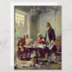 Ce dessin représente une scène de l'histoire américaine. Il montre John Adams, Thomas Jefferson et Benjamin Franklin travaillant sur la Déclaration d'indépendance. Du papier a été jeté sur le sol, suggérant que le document a été travaillé et retravaillé avec acharnement. John Adams était un représentant du Massachusetts, qui devint le second président des États-Unis. Thomas Jefferson était un représentant de Virginie, qui devint le troisième président des États-Unis. Benjamin Franklin était un représentant de Pennsylvanie, connu comme l'un des intellectuels les plus importants des Pères fondateurs. La Déclaration d'indépendance a été présentée au Congrès le 4 juillet 1776. Depuis, le Jour de l'indépendance est célébré chaque année à cette date.