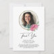 Carte de Remerciement Sympathie Photo Funérailles Deuil Mémorial présente de élégantes fleurs aquarelles roses avec feuillage vert et un cadre cercle doré entourant une photo de votre proche. Personnalisé avec votre message ci-dessous. Astuce photo: utilisez une photo avec la personne au centre de la photo. Conçu pour vous par Evco Studio www.zazzle.com/store/evcostudio