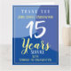Un accusé de réception du service de longue durée d'un employé à votre entreprise ou organisation. Il est conçu dans des tons bleus, jaune pâle et blanc de bon goût. Un travailleur loyal appréciera le fait que vous vous souvenez du nombre d'années qu'ils ont contribué à aider votre entreprise ou organisation à prospérer et à réussir. La carte vous permet d'ajouter une formule de salutation, le nom du bénéficiaire, le nombre d'années qu'il a servies, le nom de votre entreprise ou organisation, ainsi qu'un message personnel à l'intérieur. Vous pouvez également ajouter les informations de votre entreprise ou organisation au verso. Un geste qui ne manquera pas d'être apprécié.