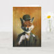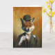 Cette oeuvre montre un brin de thé brun renard dans un casquette et costume de bowler.