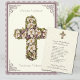 Avec une belle image vintage d'une croix avec des lys et des fleurs violettes. Les mots Christ est ressuscité ! En effet, Il Est Ressuscité en slave. Christos Voskrese ! Voistinnu Voskrese! est au-dessus et au-dessous de la croix. La prière pascale de saint Jean Chrysostom est à l'arrière avec une salutation personnelle qui peut être modifiée.