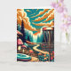 Ayez une carte d'anniversaire magique sur disque de golf à thème d'anniversaire. Un parcours de golf à disque coloré unique dans un champ de champignons rétro, pins et nuages aux couleurs vintages comme l'orange, le bleu et le rouge.