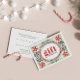 CARTE RÉTRO VACANCES FLEURS ROUGES VERTES FRAME NOËL