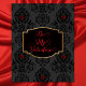 Un design gothique damassé antique victorien élégant et sophistiqué, avec un cœur gothique en filigrane rouge. Une étiquette ornée dorée entoure le message "Soyez mon Valentin" en rouge foncé.