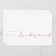 Ce design minimaliste est parfait pour la mariée moderne ! Doté d'un script de signature manuscrit associé à une simple police sans-serif dans un rose vif pour une subtile couleur pop. Personnalisez avec votre propre message sur le dos, ou commandez-les en blanc et écrivez votre message à la main. Consultez le magasin pour obtenir les cartes Maid/Matron of Honor correspondantes!