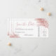 Rose Gold rose vif frondes de palmiers tropicaux sur une carte d'embarquement moderne billet d'avion enregistrer la carte de date parfaite pour un mariage à la plage ou un mariage tropical. Tout le texte peut être personnalisé, ainsi que le texte et la couleur arrière - plan. Les informations de voyage sur le dos peuvent être supprimées si nécessaire. Cliquez sur CUSTOMISER PLUS LOIN pour effectuer cette opération dans l'éditeur avancé.