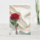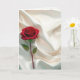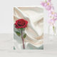 Une rose rouge repose gracieusement sur un tissu satiné blanc et lisse avec un fil de perles. Le texte intérieur peut être modifié.