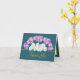Belle guirlande avec fleurs de crocus roses et violets et roses blanches contre un arrière - plan vert d'eau. Le texte de salutation couleur jaune utilise une police de typographie de script attrayante. Les fleurs recouvrent l'avant de cette carte qui peut être utilisée comme carte de remerciements, carte d'anniversaire ou toute autre carte de votre choix. Personnalisez-le avec votre texte et/ou vos images pour en faire un unique !