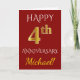 Carte Rouge, Faux Or 4e Anniversaire de Mariage + Nom