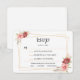 Cette belle et élégante carte de réponse RSVP correspond parfaitement à l'invitation de mariage à cadre doré et fleurs roses ! Répondant aux besoins de vos invités de mariage, que vous invitiez une personne seule, un couple ou une famille entière ; vos proches pourront indiquer le nombre d'invités conviés qui prévoient d'assister à votre mariage. Pas besoin de saisir les noms de tous vos invités manuellement ; il suffit d'inclure cette carte avec vos invitations de mariage, et ils pourront remplir leur(s) nom(s) lorsqu'ils répondront. Vous pouvez même leur demander de sélectionner une entrée dans le menu prévu pour votre réception ! Tout le texte est entièrement personnalisable, vous pouvez donc modifier les options d'entrée ou modifier le texte pour demander des informations sur les allergies alimentaires à la place.