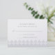 Conçue pour coordonner avec nos mariages arabesques et nos invitations à des événements, cette carte de réponse élégante en perle blanche brillante et gris argenté présente une bordure de fond géométrique d'inspiration marocaine. Ajoutez votre date RSVP et le texte de réponse en gris moyen. Nous vous recommandons d'imprimer ce style sur le papier Luxe Pearl Shimmer pour une finition métallique douce.