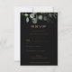 Cette carte rsvp de mariage minimaliste à l'eucalyptus noir est parfaite pour un mariage rustique. Le design présente un feuillage d'eucalyptus vert aquarelle dans un arrière - plan noir.