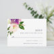 La carte RSVP florale moderne est assortie à notre mariage Fleur Vibrant et aux invitations à l'événement, et dispose d'un bouquet de roses et de pivoines aquarelles dans les tons vifs de rose roux, crème et violet, avec des feuilles botaniques verts. Personnalisez avec votre date RSVP désirée ainsi que le libellé personnalisé accepter et refuser.