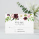 Elégante carte RSVP florale d'aquarelle, elle est composée d'un ensemble de marsala rose vif, de marsala bordeaux et de fleurs d'ivoire accentuées d'un feuillage botanique vert luxuriant. Personnalisez avec votre date RSVP désirée ainsi que le libellé personnalisé accepter et refuser. Conçu pour correspondre à notre collection de mariages Blush Romance et d'événements spéciaux.