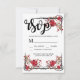 Beau design rose de fleurs rouges bohème. L'ambiance détendue et presque décontractée de Boho s'exprime parfaitement alors que les roses s'entrelacent avec les coins. Les plats sont un peu victoriens. RSVP est écrit dans un grand script manuscrit ouvert. Les détails de la réponse mariage sont écrits dans un style moderne et simple. Le dos de la carte est un rouge profond. C'est parfait pour un mariage de automne. Vous pouvez alléger le modèle en changeant la couleur en blanc, noir ou tout ce qui se trouve entre les deux !