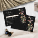 Carte RSVP Boho Fleur sauvage noir. Assurez-vous que vos invités répondent avec style avec notre Moody Black Elegant Floral Boho RSVP Card. Avec son style élégant, cette carte incarne le charme rustique et l'élégance romantique de votre thème mariage. Le design est agrémenté d'un délicat mélange d'herbes séchées, de feuilles et de fleurs sauvages vintages dans des tons terreux de bronze, brun, rouille, terre cuite et orange brûlé. Conçue avec soin avec des options de choix de repas, cette carte RSVP allie beauté bohème et fonctionnalité pratique, ce qui permet à vos invités de confirmer facilement leur présence et leurs préférences de repas pour votre journée spéciale.