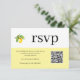 Cette carte RSVP avec QR Code est conçue pour coordonner avec la collection de citron jaune de cette boutique. Pour les articles correspondants, veuillez suivre le lien : https://www.zazzle.com/collections/yellow_lemon_collection_a131-119406773349163171 ou écrire A131 dans la boîte de recherche de cette boutique. En coque, vous avez besoin de personnalisation pour le design être libre de me contacter : szdesigns2021@gmail.com