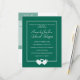 Cette carte RSVP de réponse mariage comporte le faire-part de mariage d'un côté et la carte RSVP de l'autre. Il peut être utilisé comme une alternative à l'invitation de mariage et des cartes RSVP séparées pour votre journée spéciale. L'espace permet également le retour du RSVP à envoyer comme carte postale. Il existe également une fonction de code QR que vous pouvez utiliser pour votre registre de mariages, le site Web de mariages, et plus encore. Rejoint le design des coeurs. La couleur affichée est vert émeraude. Utilisez le modèle pour personnaliser. À noter : lorsque vous utilisez le dos comme RSVP, vous voudrez d'abord les envoyer dans des enveloppes (ou les distribuer directement).