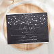 des amis Invitations et la famille à votre mariage avec ces invitations de mariage rustiques et des cartes rsvp budget. Ces cartes RSVP de mariage sont dotées d'une ardoise en damier gris rustique avec d'élégantes lampes à cordes. DROIT D'AUTEUR © 2020 Judy Burrows, Black Dog Art - Tous droits réservés. Carte RSVP de mariage de Chalkboard budget