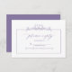 Présentation de la Lavender Floral Border Monogram Wedding RSVP! Cette carte de réponse mariage moderne présente une belle bordure en monogramme d'art floral dessinée à la main, avec calligraphie en écriture manuscrite pour une touche unique et élégante. Parfait pour tous les noces de printemps ou d'été, cette invitation vous impressionnera certainement. Le design épuré et simple conviendra parfaitement aux couples qui recherchent un look chic et élégant. Imprimée sur un stock de carte de haute qualité, cette invitation est sûre de faire une déclaration. Il s'agit d'une nouvelle conception, donc veuillez contacter le concepteur pour les produits correspondants pour compléter la suite, OU pour les variations de couleur de cette conception. Copyright Anastasia Surridge pour Invitations élégants, tous droits réservés.