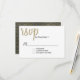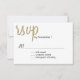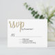 Carte RSVP de réponse mariage design moderne faite en blanc avec grand texte de script graphique doré tan lisant rsvp, en haut, avec le reste du texte en noir. Le dos est fait dans un gris charbon foncé pour un motif à pois doré. Personnalisez tout le champ de date pour votre journée spéciale. Matching Love est dans les produits Air mariage sont disponibles.