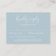 La carte d'enceinte RSVP de mariage présente un design typographique élégant, moderne et propre avec des couleurs bleu clair. Cette carte de réponse est prête pour vous à customiser avec les détails de votre journée spéciale.