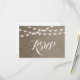 Chic moderne mariage d'été RSVP carte réponse design avec des lampes à cordes élégantes et simples accrochées sur le dessus et un mélange classe de polices de script modernes et de calligraphie sur un arrière - plan imprimé fausse aquarelle texture. Un design simple et élégant, parfait pour l'été ! Cliquez sur le bouton CUSTOMISER IT pour customiser les polices, déplacer du texte et créer votre propre conception unique d'invitation unique.