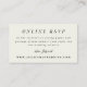 Faites une déclaration d'élégance sous-jacente avec cette carte rsvp en ligne design simple et classique avec un dossier vert feutré assorti. Personnalisez tout le texte de cette carte d'insertion RSVP en ligne et aidez votre invité à votre site mariage pour toute information supplémentaire tout en économisant quelques arbres et de l'argent sur l'affranchissement retour.