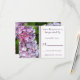 La carte RSVP d'hydrangée violette présente notre photographie originale des fleurs de fleur d'hydrangée violette. Cette carte RSVP n'est qu'un élément de notre collection de Mariages Hydrangea - de nombreux produits de coordination sont disponibles, y compris les envois et les invitations correspondants.