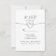 Script de calligraphie simple et élégant, carte RSVP de mariage violet minimaliste avec choix de repas, faux coeur de corde en argent.