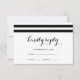 Carte rsvp de mariage noir et blanc côtier chic et moderne avec rayures nautiques classiques.
