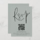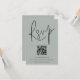 Code QR moderne Script Mariage Light Sage Green RSVP. Un boîtier d'option pratique pour demander à vos invités de scanner votre code QR vers votre site Web mariage à RSVP. Une typographie stylisée en noir pour le titre principal RSVP complétant le reste du texte que vous pouvez facilement personnaliser. Votre code QR sera généré automatiquement pour mettre à jour l'exemple de code dans la conception, lorsque vous changez simplement l'exemple d'URL dans le modèle avec votre propre URL de site mariage.