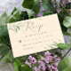 Il s'agit d'un design de carte RSVP élégant avec feuillage vert poussiéreux sur une texture de papier artisanal beige avec typographie personnalisable et élégante en vert foncé. C'est un design sophistiqué et élégant que vous pouvez éditer du texte, des images et des polices. Ce design évoque une atmosphère organique et une élégance simple.