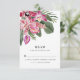 Célébrez votre amour et votre évasion au paradis avec cette carte Tropical RSVP Parfait pour les mariages de plage et de destination côtière, cette carte RSVP est remplie de touches élégantes et modernes, de fleurs romantiques et de couleurs vives. L'étonnante aquarelle comprend des feuilles de palmiers verts et de monstères, des orchidées magenta et fuchsia vives et des fleurs d'hibiscus roses. Le dos comprend un motif de coordination. Trouvez les articles correspondants dans la collection Colorful Tropical Floral Mariage Collection.
