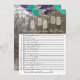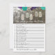 Rustique carte de jeu de douche nuptiale correspond à notre Rustic Mason Jar Mariage et collection de Fêtes des mariées. Ce pays rustique jeu de fête et dispose d'un arrière - plan en planque de bois marron avec des fleurs turquoise et violet au sommet avec des jarres de maçon suspendues à eux. les mots "Amour" se trouvent dans les jarres de maçon. Caractéristiques avant Comment bien connaissez-vous la mariée? Pour une personnalisation supplémentaire, n'hésitez pas à me contacter ! On y voit le bleu turquoise et le violet.